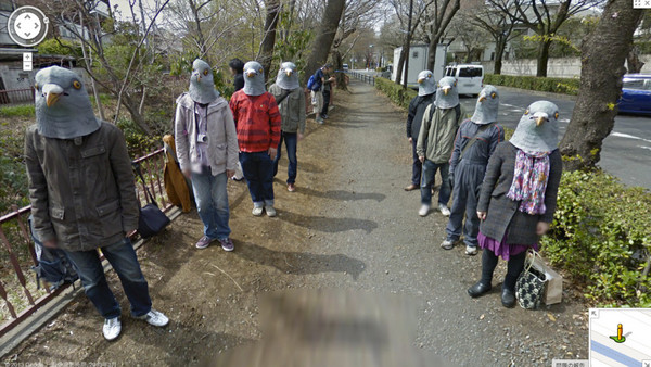 Google街景車行遍世界各地,難免在某些角落拍到不可思議的事情。最近日本媒體ITmedia報導,東京武蔵野市的三鷹車站附近,有一群詭異的「鳥頭人身」沿著街道行走,當街景車通過時,他們還會轉頭注視著鏡頭……