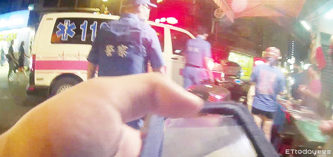 ▲中藥行活動式玻璃門突然爆裂,碎片割傷3歲陳姓女童肩膀,陳姓男子身上還抱著另一位未滿周歲小孩。
