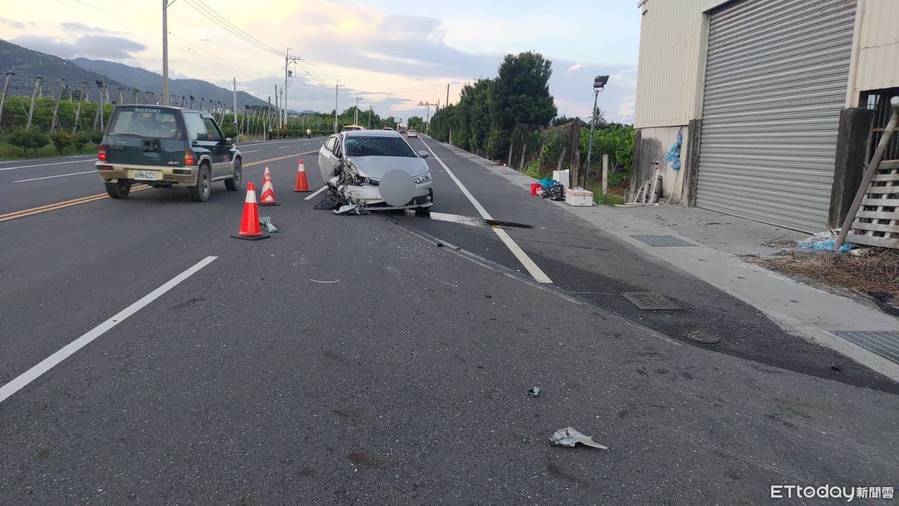 ▲台東台9線香蘭段1車自撞路旁電線桿,造成王姓駕駛及乘客共5人受傷。(圖/記者楊漢聲翻攝,下同)