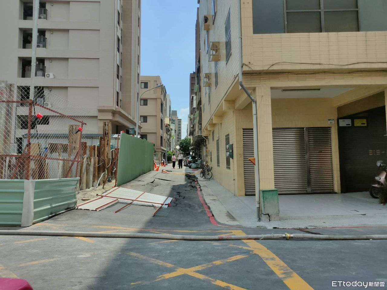 ▲自強一路83巷口路面坍塌。(圖/記者許宥孺翻攝)
