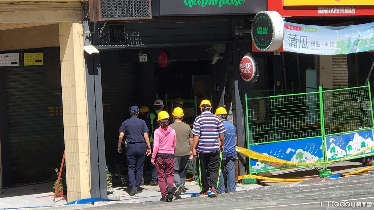 ▲14日一處工地發生道路坍塌,導致附近民宅傾斜變危樓,居民緊急撤離,今早讓受災戶限時10分鐘,進危樓拿東西。(圖/記者賴文萱、許展溢攝,下同)