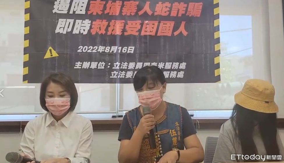 立委周春米與伍麗華今(16)日上午在周春米服務處召開記者會,有3位親人在柬埔寨的原住民出席表示,最近有和柬埔寨的家人視訊過,但他們都沒有看著鏡頭,眼神漂移,懷疑有受到監控。立委伍麗華表示,在這1個多月收到相關個案陳情是等比級數的增加,令人非常擔憂,周春米也呼籲政府加緊救援腳步,成立跨國、跨域、跨組織的機制,援救受困國人。