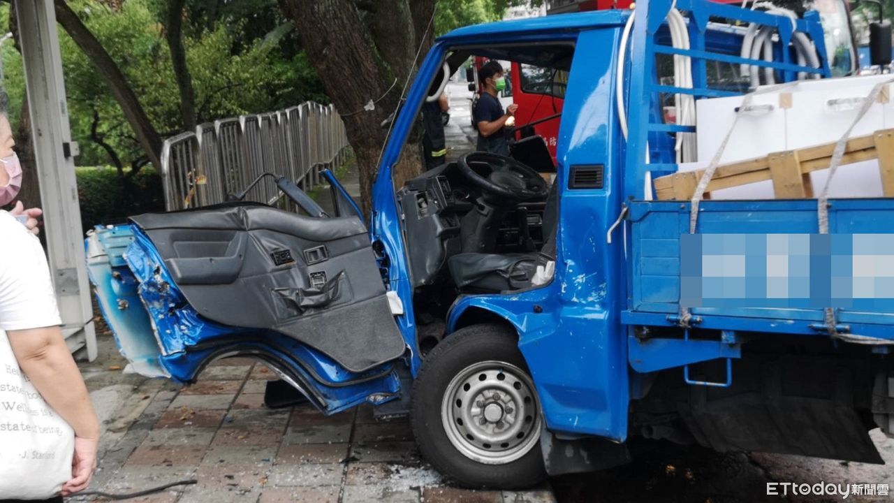 台北市士林區至善路二段16日下午發生一起嚴重車禍!一輛滿載廚具家電用品的貨車疑似失控,衝撞路旁公車亭,而猛烈撞擊力道,導致貨車車頭變形全毀,駕駛雙腿遭夾受困車內,副駕駛則受到輕傷自行脫困。警消獲報到場,並出動破壞機具將駕駛救出送醫,所幸他意識清楚並無大礙,而至於詳細事故原因仍待調查釐清。