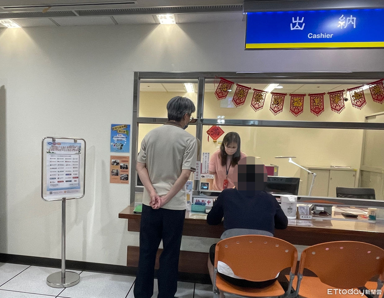 ▲新北林姓男子欠罰單恐遭管收,女婿(坐者)眼尖發現,私下刷卡代為繳清。(圖/行政執行署新北分署提供)
