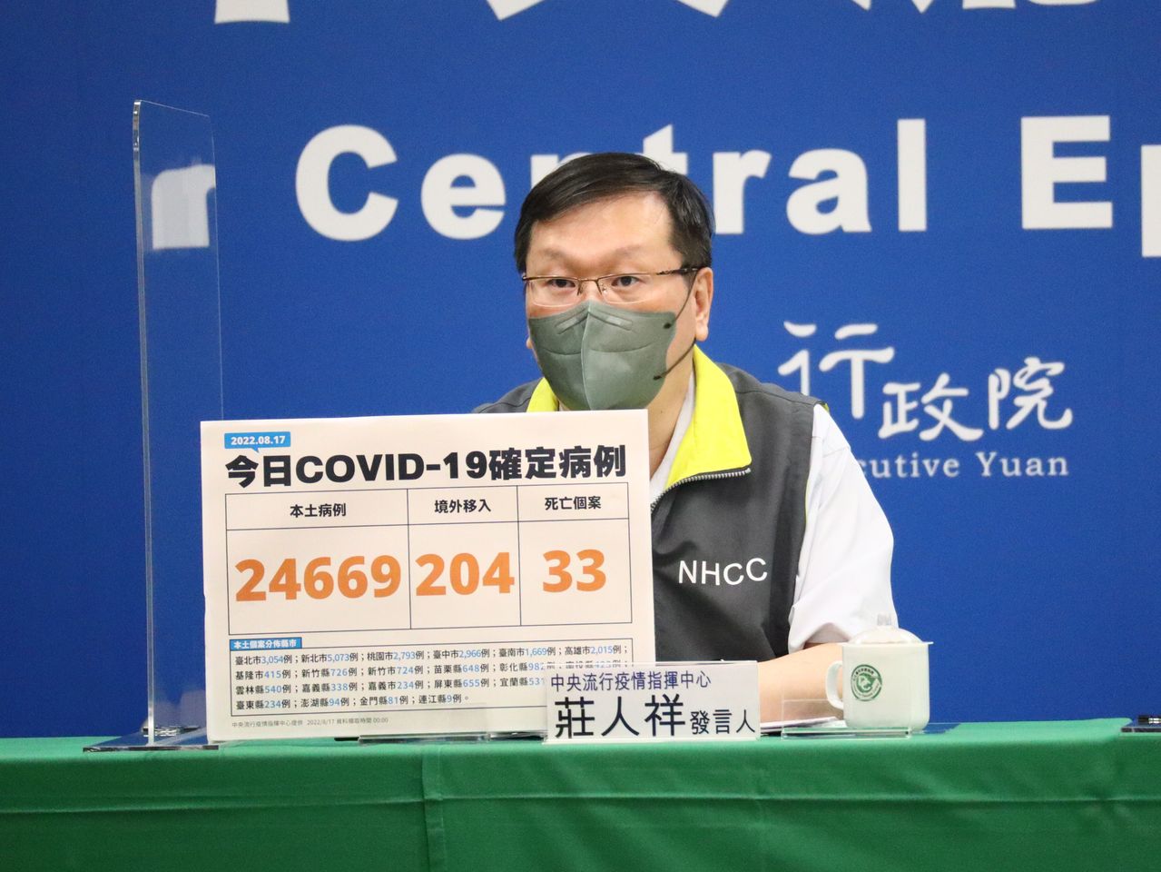 中央流行疫情指揮中心今公布國內新增24,669例本土個案,另增204例境外204和33人死亡33。本土個案雙北個案明顯增多,仍以新北5073例最多,其次依序為台北3054例、台中2966例、桃園2793例、高雄2015例、台南1669例。