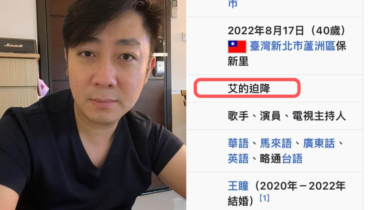 有網友今一早在臉書公開社團《爆廢公社》貼出維基百科截圖「這樣真的合適嗎?」原來維基百科上,艾成死因一欄遭惡意編輯為「艾的迫降」。原PO發現修改時間為今晨7點43分,截稿前已更正為「墜樓」。