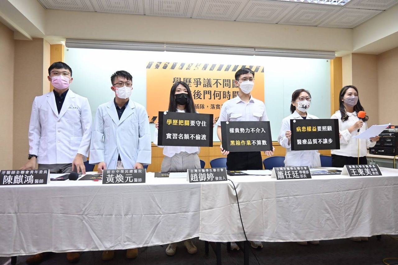 台灣牙醫學生聯合會學權部長蕭任廷指控,部分立委於《醫師法》修法時,挾帶7項附帶決議,嚴重破壞原先立意良善的醫師法修正案,企圖圖利特定人士,大開後門;台灣部分金錢充裕的家庭,因子女無法考取國內牙醫學系,近幾年選擇將子女送至9大地區的特定國家,如波蘭或西班牙牙醫系就讀,藉此規避通過率約為6%的學歷甄試,根據推算,國外學歷牙醫學生每年歸國人數大約落在600名,相比於國內管道入學每年名額約落在只有400名。