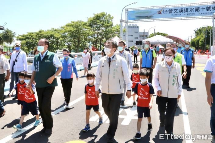 ▲「曾文溪排水第十號橋改建工程」19日舉行完工通車典禮,由台南市長黃偉哲親自主持。(圖/記者林悅翻攝,下同)