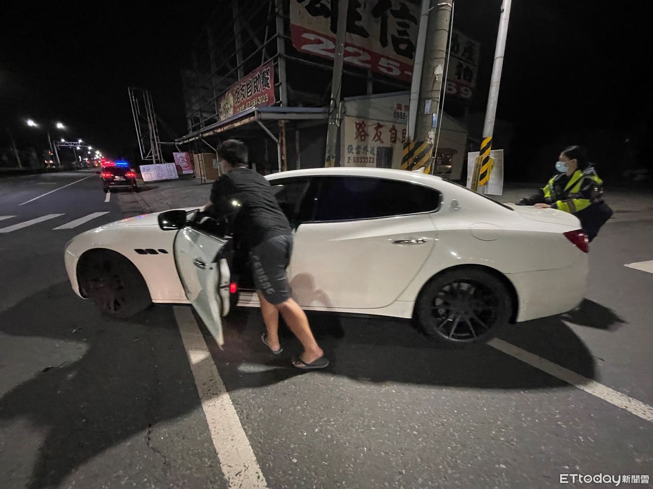 湖內警分局湖街派出所所長侯正輝、警員陳宮萍,日前執行巡邏勤務,在湖內區中山路一段與大仁路口發現一部瑪莎拉蒂跑車停駛於路中央占用車道,雖打故障燈號,但卻未放置警告標示,行經車輛紛紛閃避,而駕駛則坐在車內。