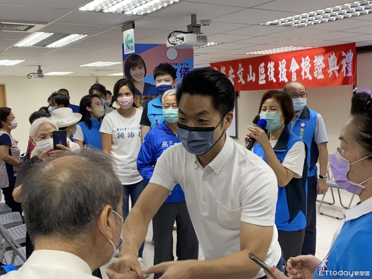 ▲國民黨台北市長參選人蔣萬安20日出席文山區後援會幹部授證大會。(圖/記者崔至雲攝)