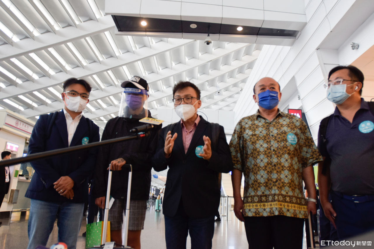 ▲在藍委鄭正鈐、吳斯懷、洪孟楷的護送下柬埔寨受害者陳男先行返台。(圖/記者邱顯燁攝)