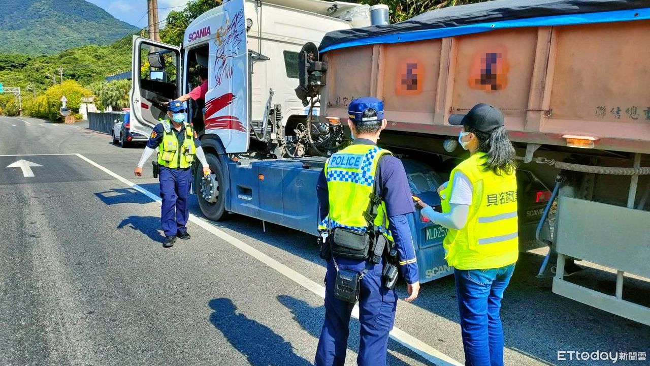 ▲瑞芳警出動「移動式地磅」取締大車超載。
