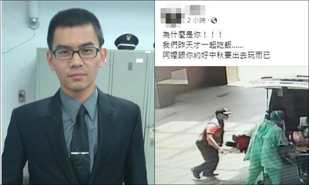 另外,點進家屬的個人臉書一看,他還震驚轉貼員警不治的消息,不敢置信地說,「為什麼是你!!!我們昨天才一起吃飯……阿嬤跟你約好中秋要出去玩而已。」讓網友也心疼不已,「節哀,希望阿嬤不要知道這個消息,怕阿嬤受不了。」
