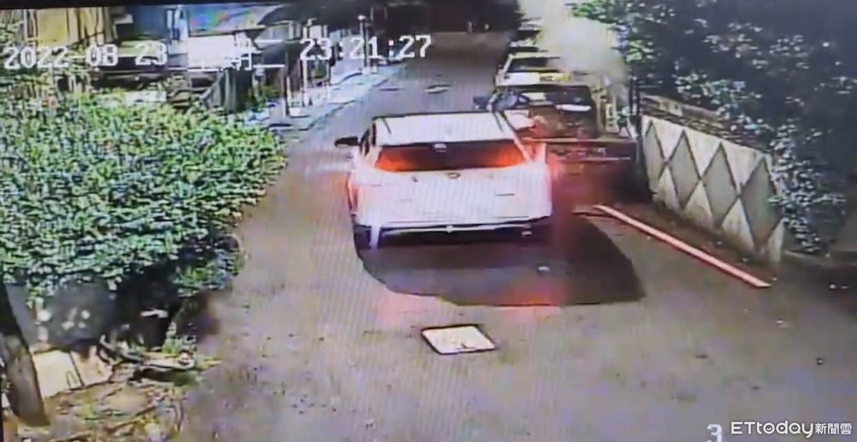 霧峰區中正路616巷24日凌晨0時3分時突傳出天然氣味,嚇得附近民眾出門查看,才發現疑似一台小貨車撞斷天然氣管線,造成外洩,附近上百住戶也在睡夢中驚險疏散。不過警方調閱監視器發現,為一台白色休旅車撞上2台小貨車後,小貨車再間接撞斷管線,一瞬間天然氣往外噴,一縷白煙外洩全被監視器拍下。
