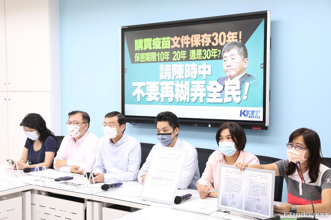 ▲國民黨團召開「購買疫苗文件保存30年!保密期限10年、20年、還是30年?請陳時中不要再糊弄全民!」記者會。(圖/記者屠惠剛攝)
