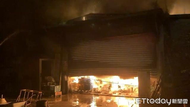 ▲宜蘭一家木材工廠晚間失火陷入熊熊大火中。(圖/記者游芳男翻攝)