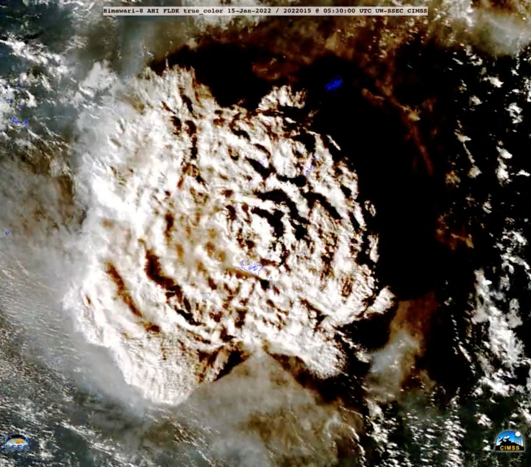 ▲今年東加海底火山「洪加湯加-洪加哈派」噴發的衛星照片。(圖/路透)