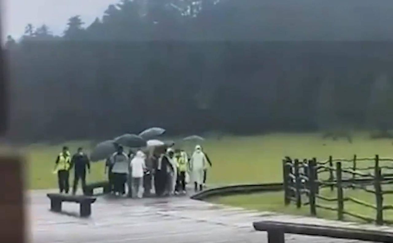 一名遊客稱,事發於24日15時許,在藍月谷附近,當時斷斷續續下著雨,其表示當時並沒有一直打雷,「好像就那一下。」
