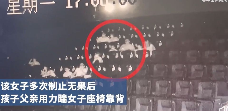 陸媒《中國新聞週刊》微博影片顯示,女子正在看電影,斜後方穿白衣高壯男突然來個大飛踢,座椅猛烈回彈撞擊女子後腦勺。當時,女子立刻起身理論,男子不服氣想衝出去打人,被一旁妻子勸阻。