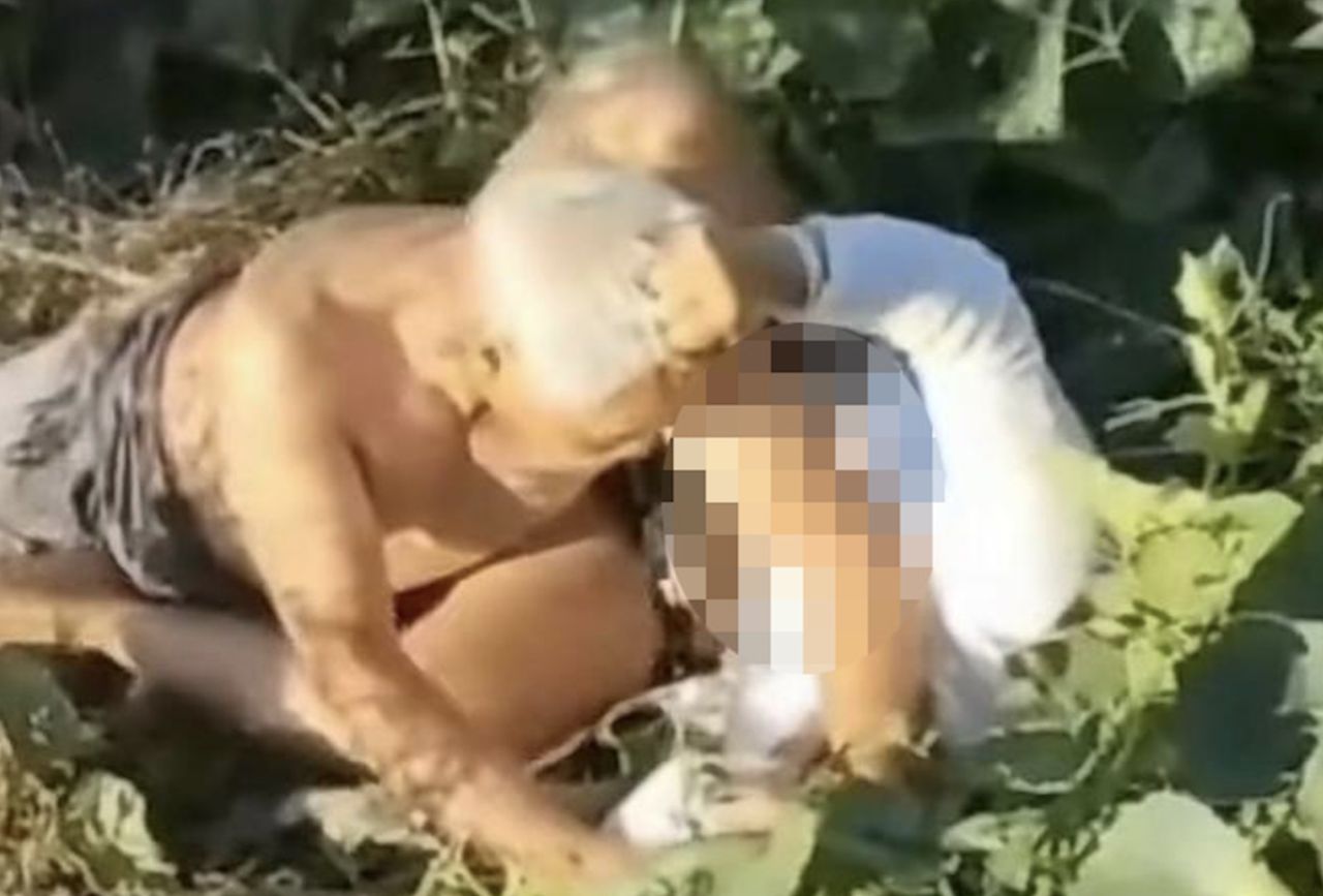 根據《網易》公眾號文章,網上流傳的影片見到頭髮已花白、赤裸上身的老爺,正把自己的媳婦按壓在菜地。由於老爺力氣大,媳婦掙脫不開,其身上衣服亦已褶皺成一團,大面積走光。老爺把媳婦壓在身下期間,在旁的奶奶不時「加入」指罵媳婦。