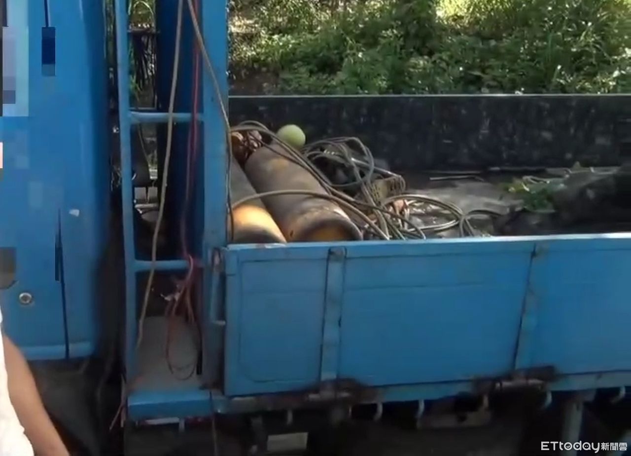 ▲警方拘提劉姓男子時,查獲當時做案小貨車及車上切割鋼材工具1批。
