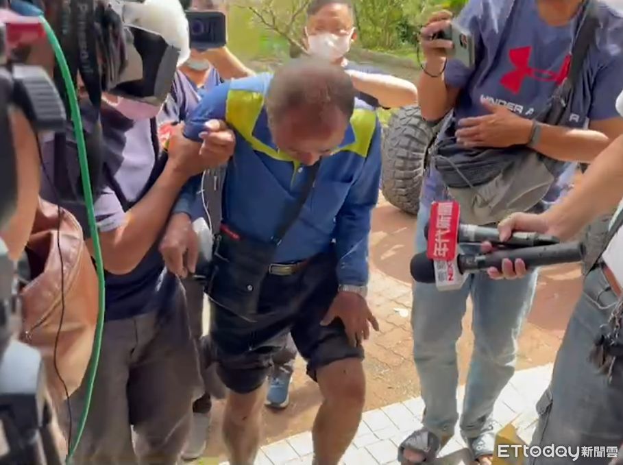 ▲清水公所失聯5人平安獲救,第3位下山林姓司機虛弱需人攙扶。(圖/記者鄧木卿攝)
