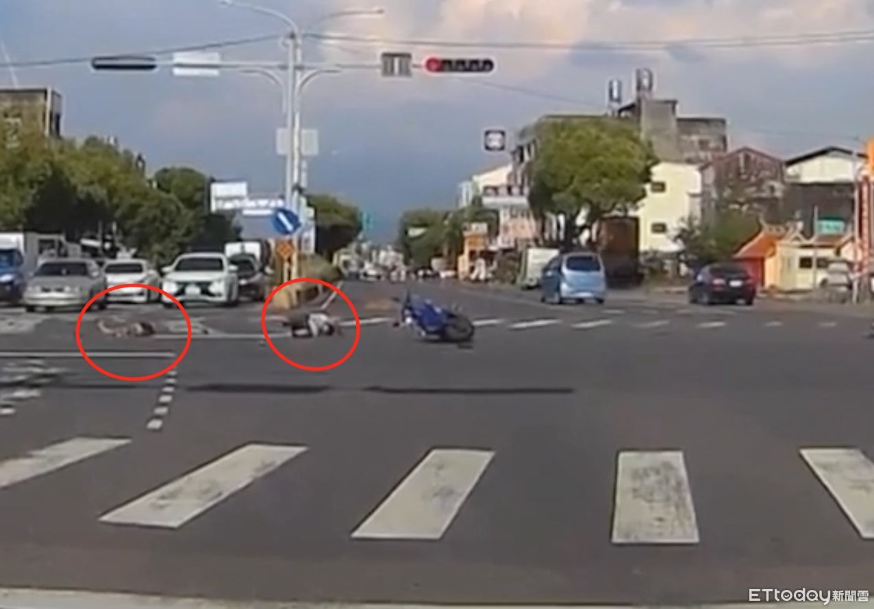 ▲斗六市大學路發生恐怖車禍,祖孫2人遭撞倒地不起,阿公心繫孫子一度掙扎要起身。(圖/翻攝自Facebook/斗六人社交圈)