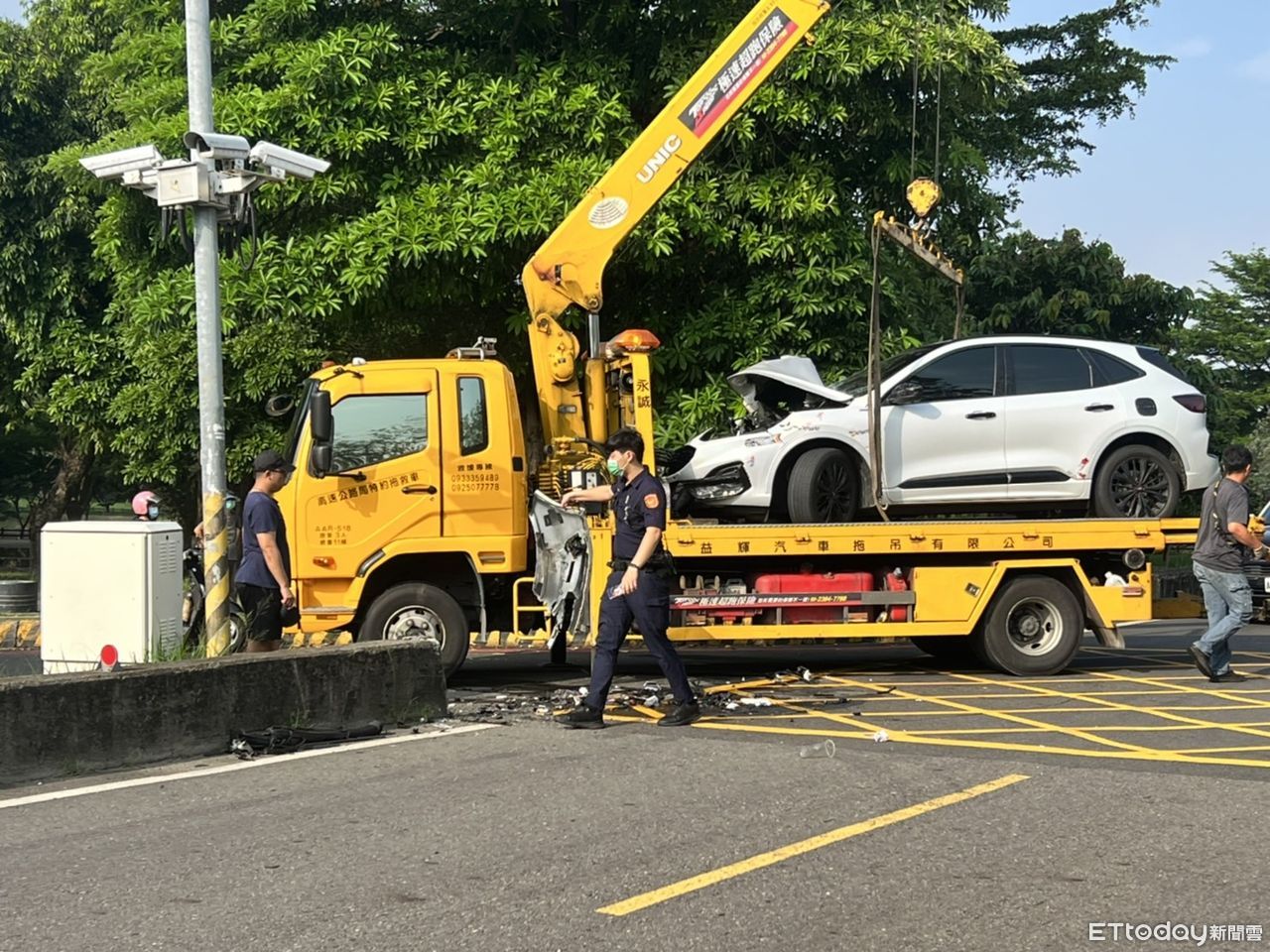 據了解,疑似後方休旅車未注意車前狀況,加上該路段右轉進肇事路段前有一大樹,是否因此造成視線死角釀成車禍,有待確認。