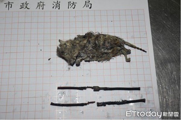 ▲火調課人員查出透天宅大火的凶手,在飲水機發現老鼠焦屍及被咬破電線。(圖/桃園市政府消防局提供)