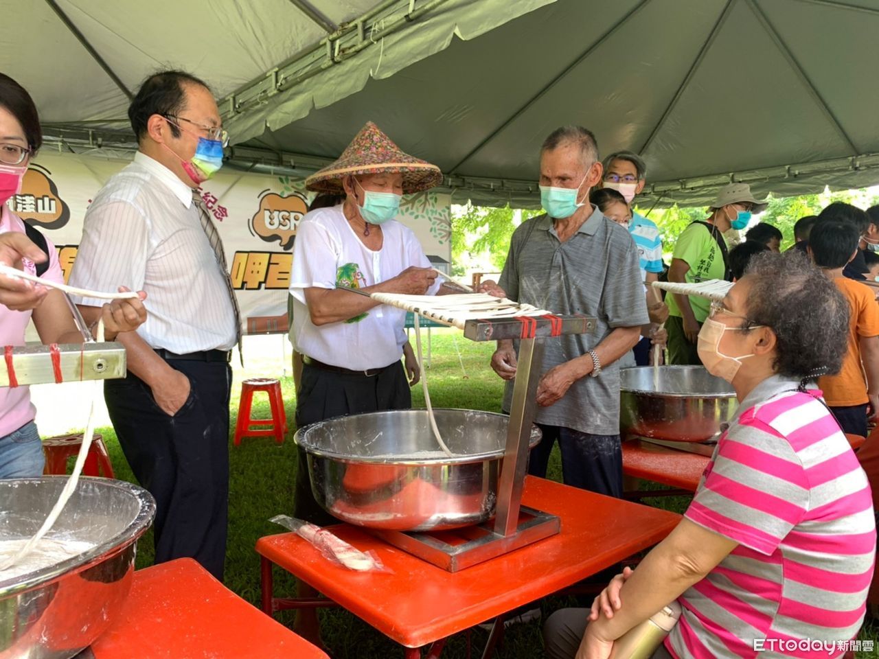 ▲迎接祖父母節,中華醫事科技大學USR團隊,與台南市博物館創新發展協作平台,28日在水道博物館舉辦祖父母節活動「長麵線呷百二」。(圖/記者林悅翻攝)