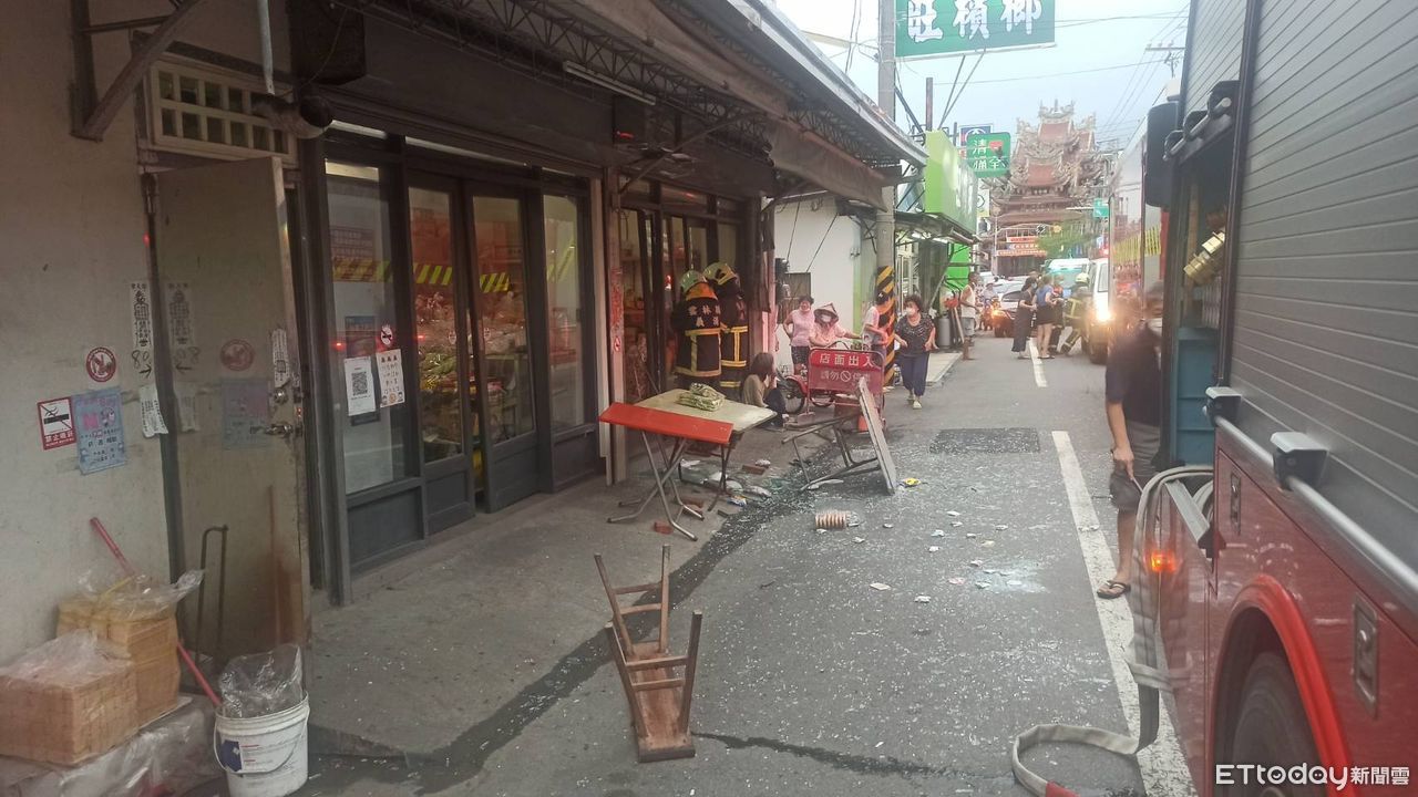 ▲土庫鎮馬光路一家雜貨店發生氣爆,嚇壞附近鄰居紛紛奔出查看,雲林縣消防局派員前往搶救,現場無火光,一名8旬婦人深受多處灼傷送醫治療。(圖/記者蔡佩旻翻攝)