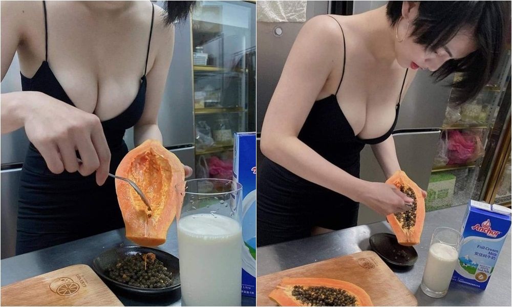 近日臉書上瘋傳2張「正妹切木瓜」的照片,只見畫面中的女子留著一頭俏麗短髮,身穿黑色低胸小可愛,露出漂亮的鎖骨線條和纖細手臂。但更吸睛的是她那白皙的北半球,乍看彷彿快要彈出來,讓網友直呼,「夏天來杯木瓜牛奶……清涼解渴。」還有人翻出正妹一段超晃的切西瓜影片,讓她有「西瓜妹」的稱呼。