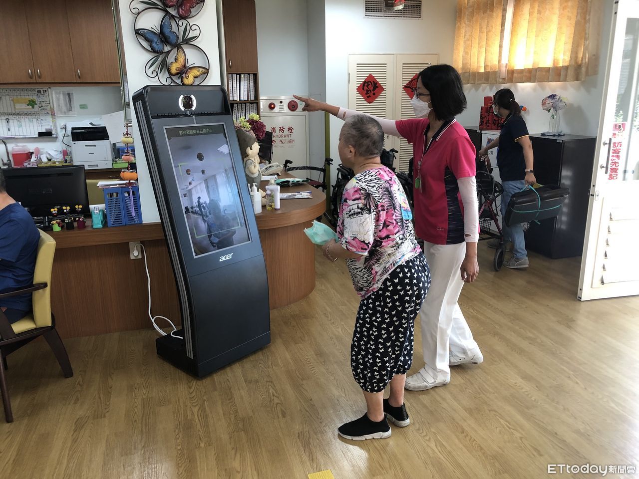 埔榮表示,中心因此於去年底配合退輔會發展長照智慧醫療,設置人臉辦識系統,可自動辦識出長輩們的身份、即時量測體溫並減少簽到作業流程,同時能夠快速分析出長輩當日的心理情況,如高興、傷心或是憂鬱等,瞭解長輩入托後的長期情緒變化走勢,兼顧提升防疫與照護品質。