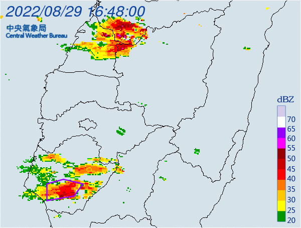 氣象局表示,對流雲系發展旺盛,易有短延時強降雨,今(29)日臺南市有局部大雨或豪雨,桃園、南投及臺中以南地區有局部大雨發生的機率,請注意雷擊及強陣風,低窪地區請慎防淹水。