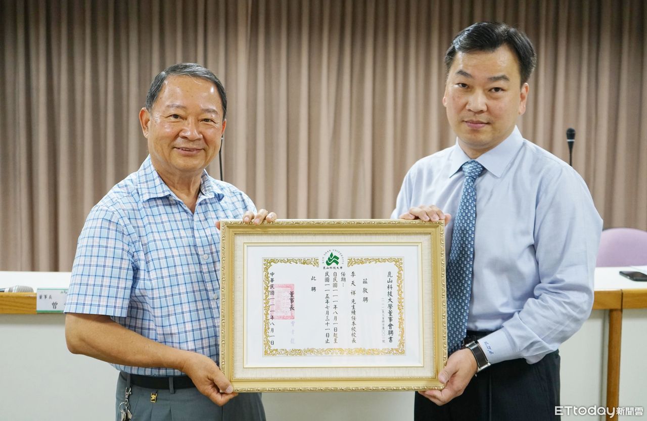 ▲崑山科技大學李天祥教授,因校務營運績效卓越,由董事長曾韋龍親自頒發續聘聘書。(圖/記者林悅翻攝,下同)