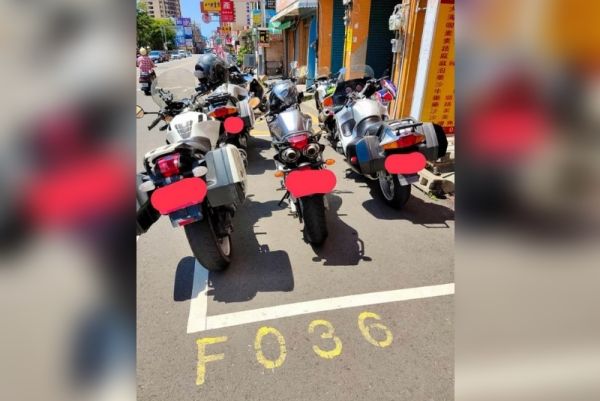 這名男子在「爆廢公社」張貼照片,一格停車格內共停放6輛重機,讓他不禁好奇,「看到路邊一個停車格停了6台重機,好奇到底要開幾張停車單?」