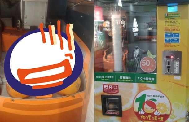 許多地方設有投幣式的鮮榨果汁機,不過有民眾發現,高雄某賣場設置的機台明明還在運作,裡頭的水果竟已經嚴重發霉到長出厚厚一層白毛,畫面曝光後,不少網友聯想到鳳山傳奇人物「水果嬤」。