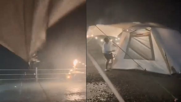 夏末秋初之際頻頻出現颱風,第11號颱風「軒嵐諾」也增強為強烈颱風,若有出遊計畫需多注意氣象。一段露營遇到狂風暴雨加閃電的畫面昨(30)日則被發到網路上,吸引超過萬人按讚。