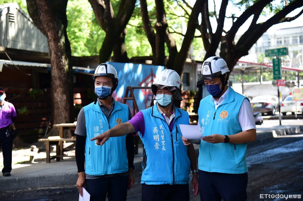 ▲花蓮市長魏嘉賢(右一)到現場關切施工情形。