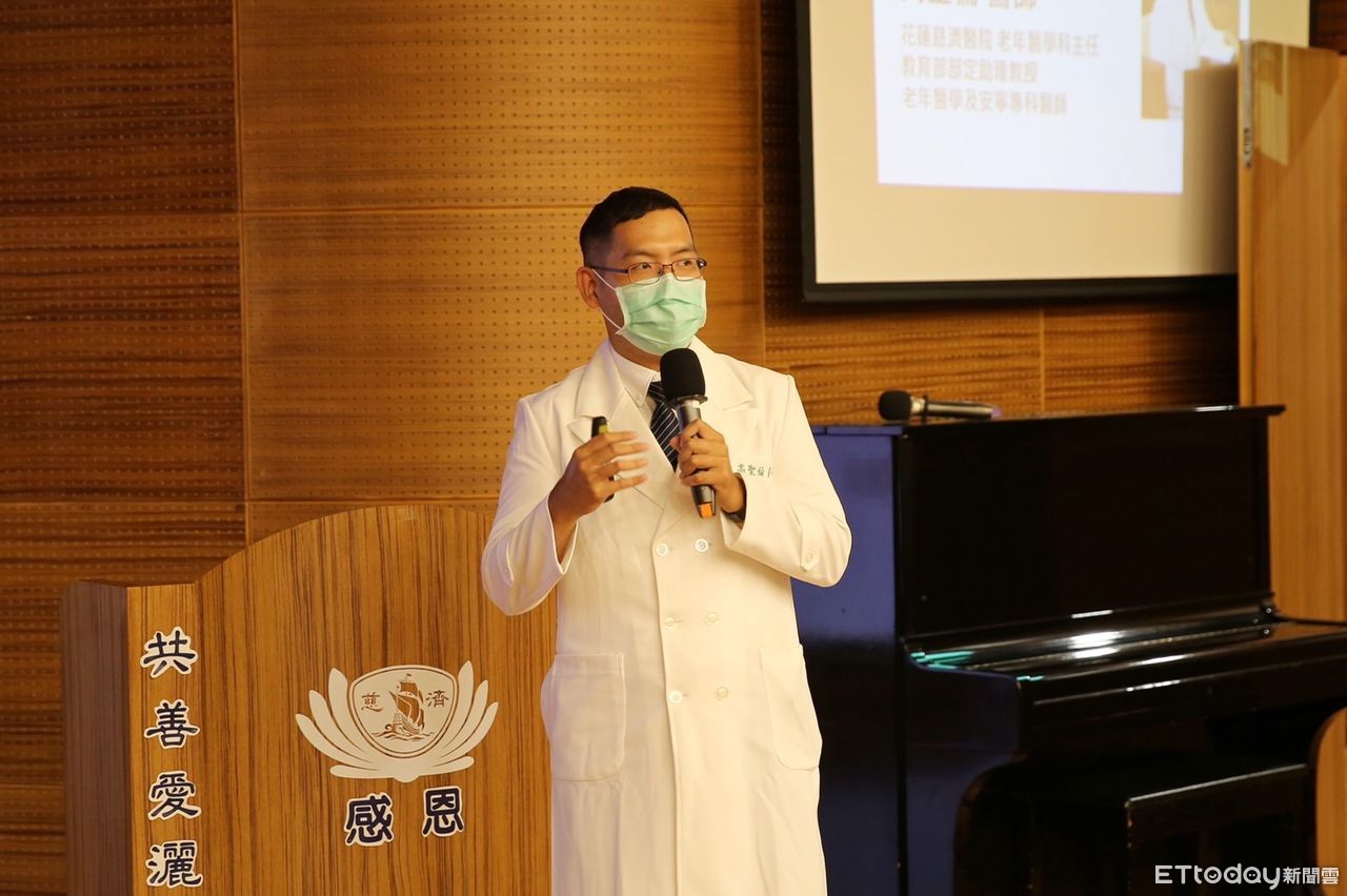 花蓮慈院老年醫學科主任高聖倫帶領種子師資認識長者肌少症。他表示,隨著年紀增加,人體的骨骼肌量會逐漸下降,進而影響肌肉力量和功能,而判斷肌少症的三項指標為肌肉量下降、肌力減退、生理表現下降等;若是置之不理可能會增加跌倒、身體活動功能下降、失能或是死亡的風險。