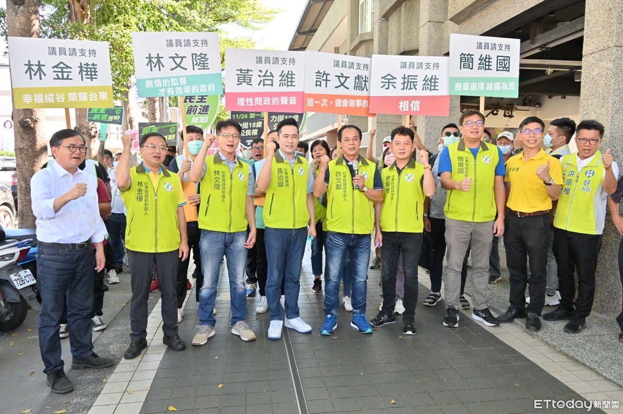 距離年底地方首長及民代選舉倒數87天,6位民進黨籍縣議員候選人31日由許文獻領軍,聯合前往台東縣選委會登記參選,包含黃治維、余振維、林金樺、林文隆、簡維國參選台東縣議員,立委劉櫂豪、鍾佳濱、台東市長參選人洪宗楷及各村里長代表候選人、支持者一起陪同。登記完成後,在熱烈支持者一起高喊「議會組黨團,議員6席壘打」口號下,展現勝選氣勢。