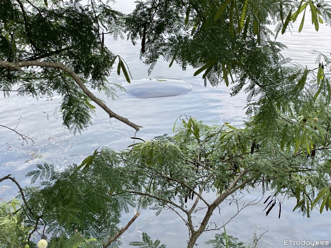 ▲163縣道轎車衝入池塘,駕駛救出後無生命跡象送醫搶救 。(圖/記者翁伊森翻攝)