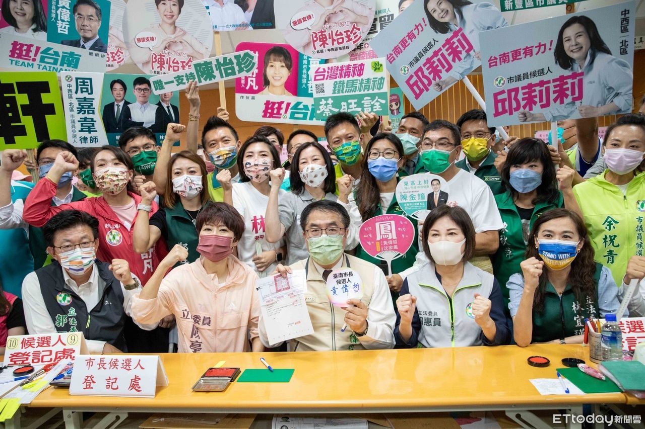 台南市長黃偉哲31日上午前往台南市選委會登記參選,立委賴惠員、郭國文、陳亭妃、林宜瑾、林俊憲和王定宇夫人齊現身力挺,以及民進黨議會黨團總召劉米山議員偕同黨內所有議員及議員參選人,不分派系展現台南綠營大團結氣勢,成為全場最大焦點。