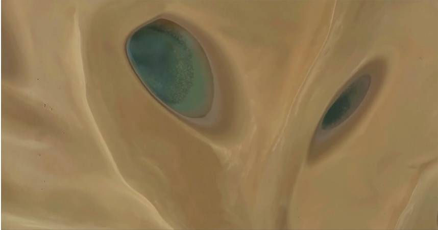 沙漠中的美麗狐狸讓人驚豔!近日大陸攝影師王漢冰拍下新疆沙漠的奇景,在沙漠中的2個水窪像狐狸的眼睛,乍看之下還有點嚇人,此景色引發網友熱烈討論。