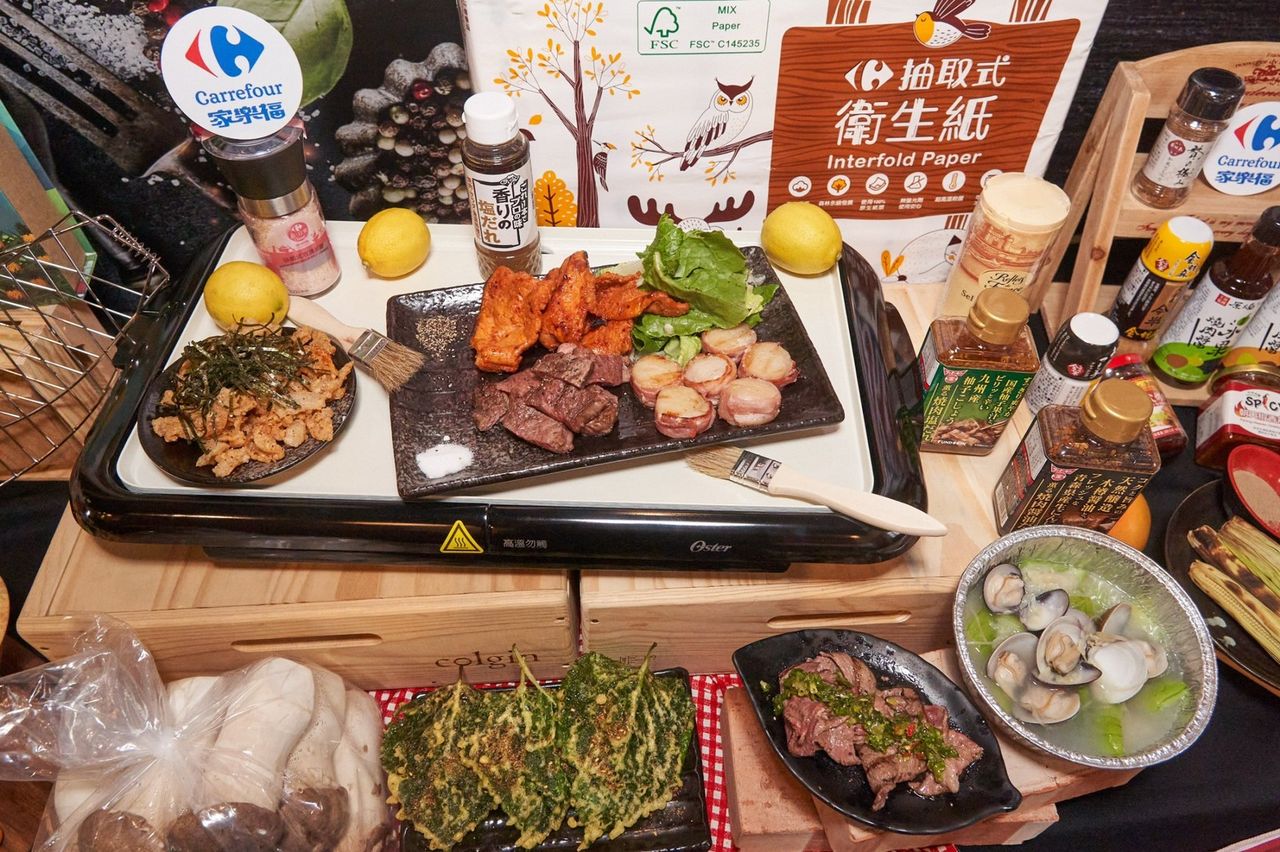 ▲家樂福搶攻中秋烤肉商機,推出「在家打造台日韓居酒屋」。(圖/記者林育綾攝)