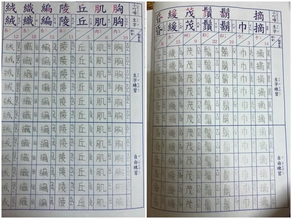 原PO在臉書「爆廢公社」的文章中提到,「我女兒的字好工整,看得真舒服。」而在附上的照片中,只見作業本上的生字練習部分1頁共有7行,原PO曬出其中2頁,包含「摘、巾、鬍、鬚、茂、緩、昏、胸、肌、丘、陵、編、織、絨」,總共14行字全部都寫得十分整齊。