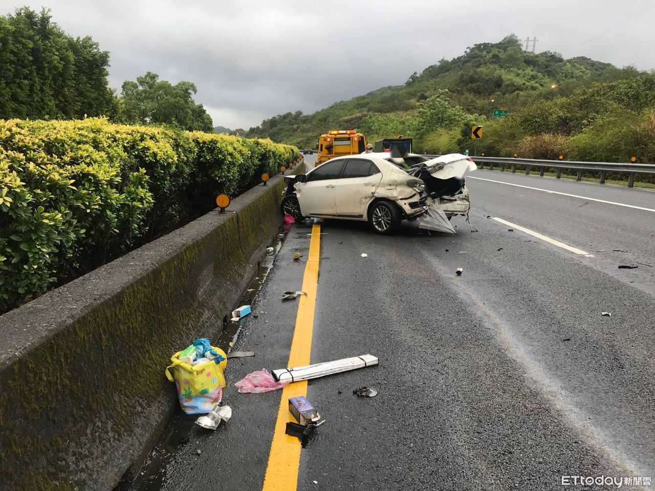 現場車內物品散落一地、車頭車尾因為劇烈旋轉撞擊、車輛幾乎全毀、至於肇事原因,還要等國道警察進一步調查釐清。