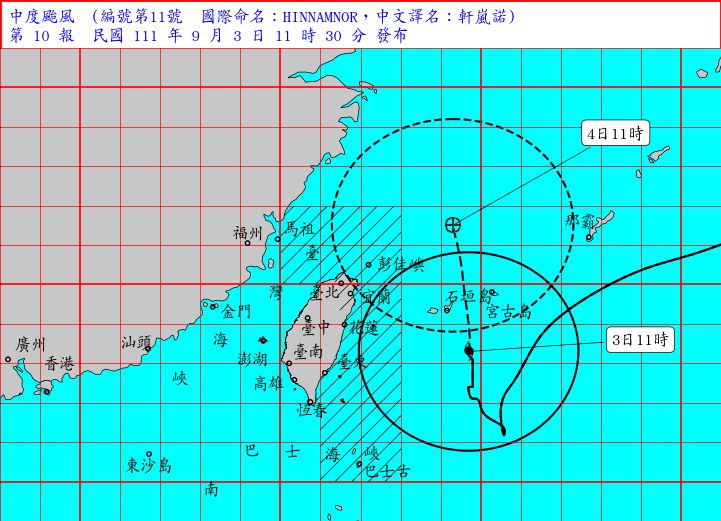 ▲軒嵐諾颱風3日上午動態。(圖/氣象局)