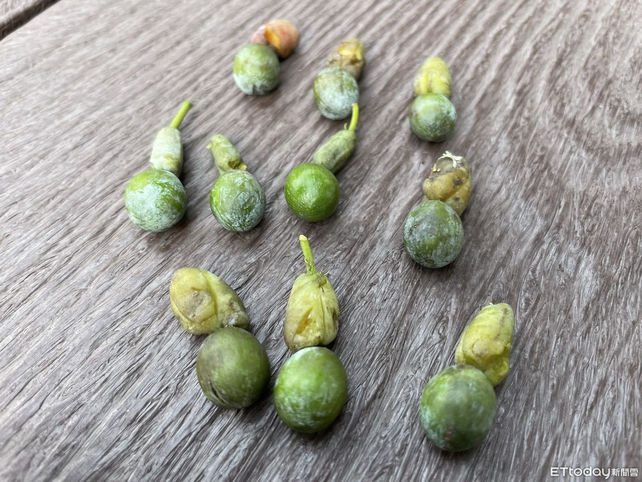 ▲台南山上花園水道博物館園區,不時可以見到長得像愛心的掌葉蘋婆果莢,還有宛如羅漢造型的羅漢果實,吸引不少喜愛植物的民眾前來拾取,也增添出遊樂趣。(圖/記者林悅翻攝,下同)