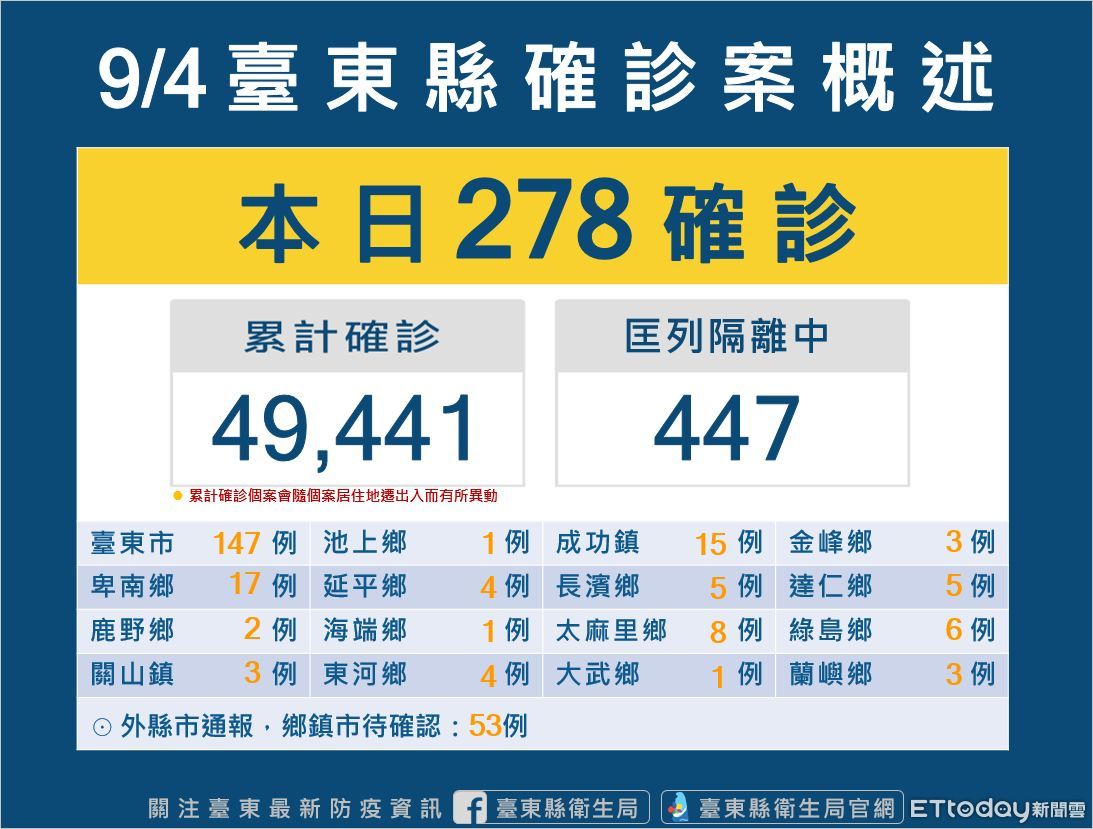 ▲台東縣4日新增278確診。(圖/記者楊漢聲翻攝)